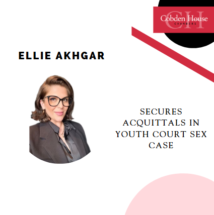 The case was heard at Manchester Youth Court during which Miss Akhgar embarked on the sensitive cross examination of a 10-year-old child who had been 8 years old at the time of the allegations. The case required close scrutiny of the way in which the complainant had been questioned by the Detective Seargent during her video evidence. The officer in the case was also cross examined as to the deficiencies in the investigation. The child defendant was acquitted of all four matters after a three-day trial.